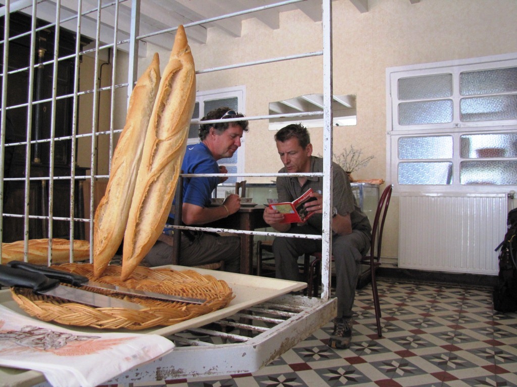 in einer kleinen Bäckerei wo man auch Kaffee trinken kann, beraten Elias und Franco den weiteren Wegverlauf