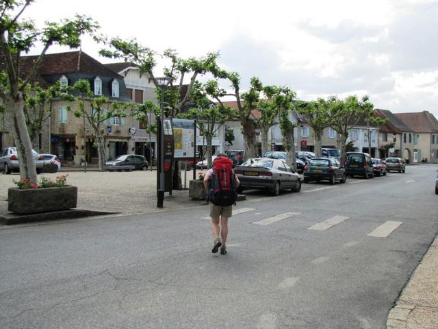 Mäusi überquert den schönen Dorfplatz von Arzacq-Arraziguet