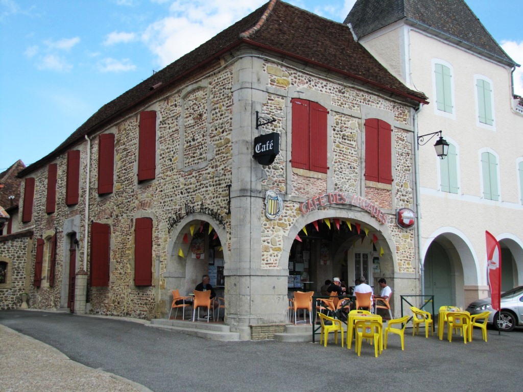 schmucke Arkadenhäuser säumen den Dorfplatz von Arzacq-Arraziguet