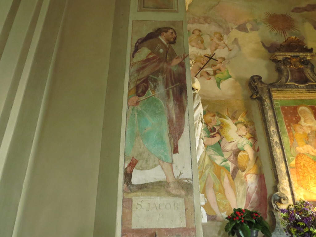 links neben dem Altar ist Jakobus als Pilger ersichtlich. Sofort kommt uns der Jakobsweg in den Sinn