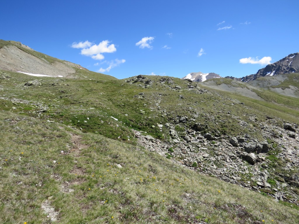 immer auf der orographisch rechten Seite der Ova da la Val da Fain folgen wir dem Weg weiter ins Tal hinein Datum 16.04.2026