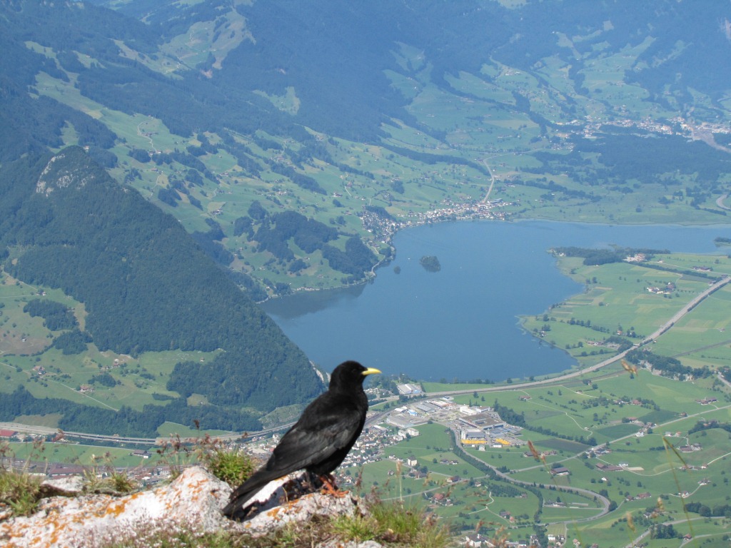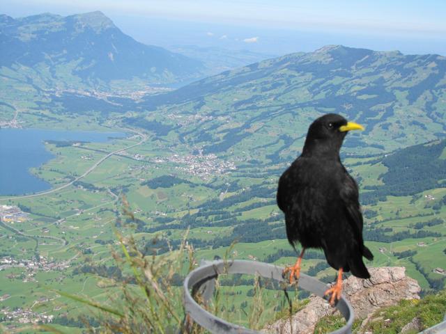 auch eine Bergdohle bewundert die schöne Aussicht runter nach Schwyz Datum 20.07.2011