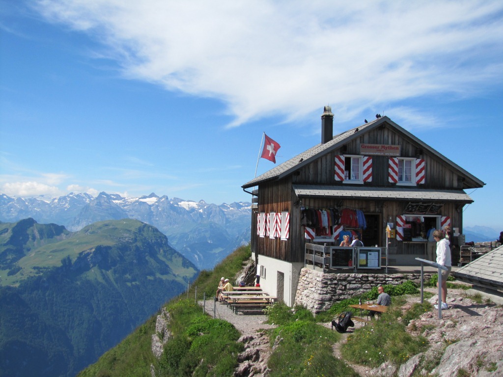 zuoberst auf dem Gipfel des grossen Mythen befindet sich das Berggasthaus Datum 20.07.2011