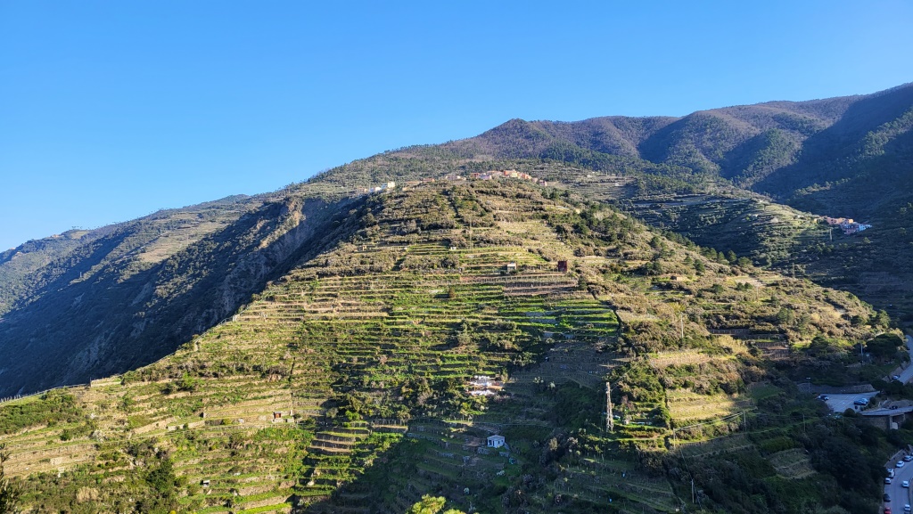 gut ersichtlich der Wanderweg den wir am Vortag gemacht haben. Er führte von Volastra hinunter nach Manarola Datum 15.06.2023