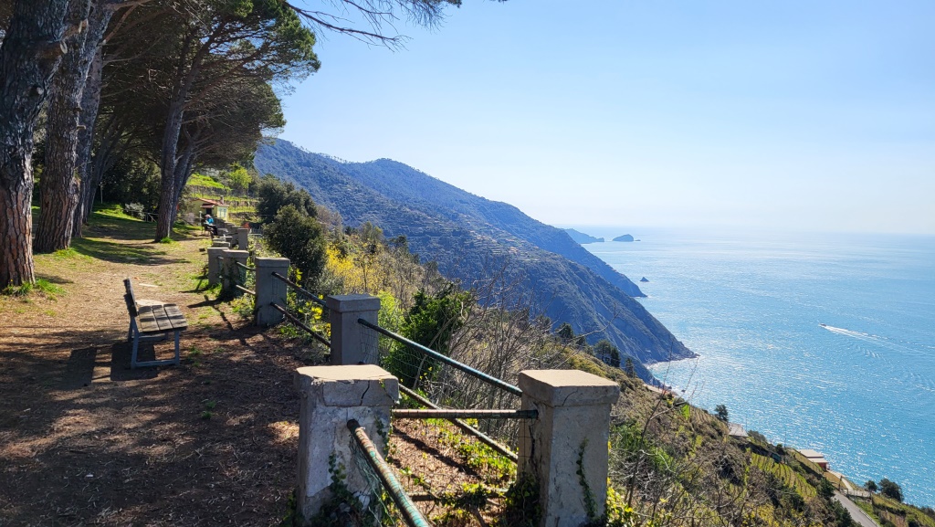 die ganze Cinque Terre liegt uns zu Füssen. Der Blick reicht bis zur Landzunge Punta Mesco Datum 15.06.2023