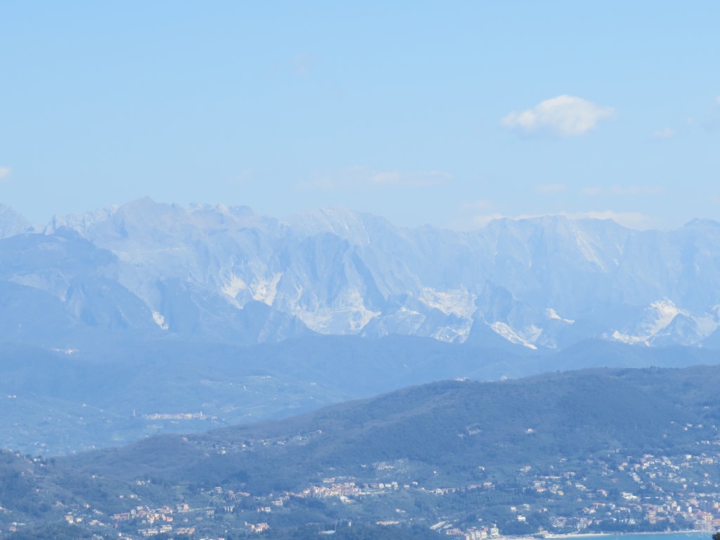 während dem Wandern geniessen wir die schöne Aussicht auf die weissen Berge (Marmorabbau) von Massa Carrara Datum 15.06.2023
