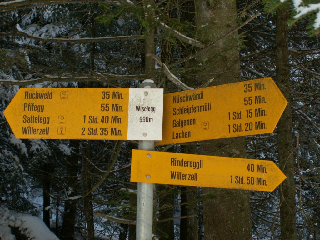 Wegweiser bei Wiselegg 990 m.ü.M. Datum 01.02.2007