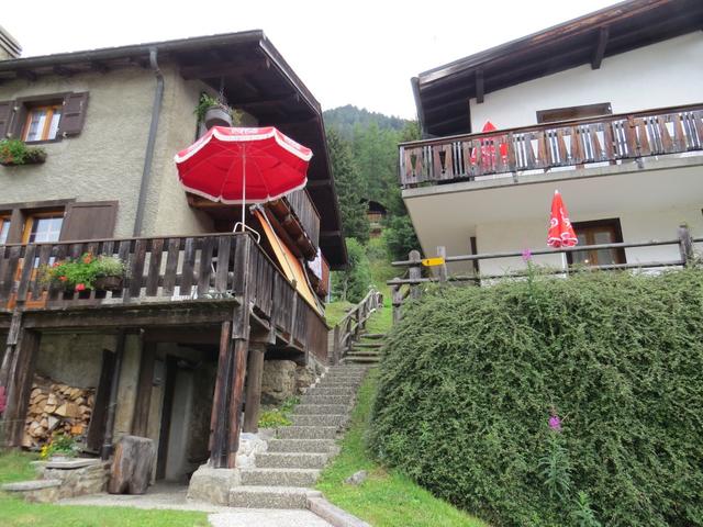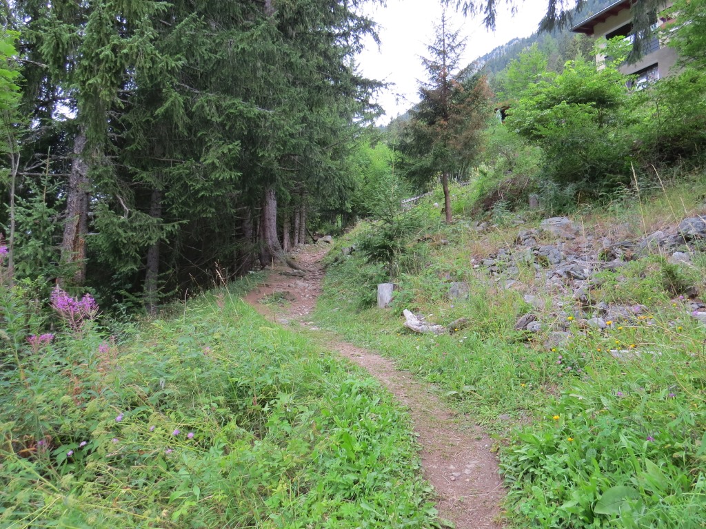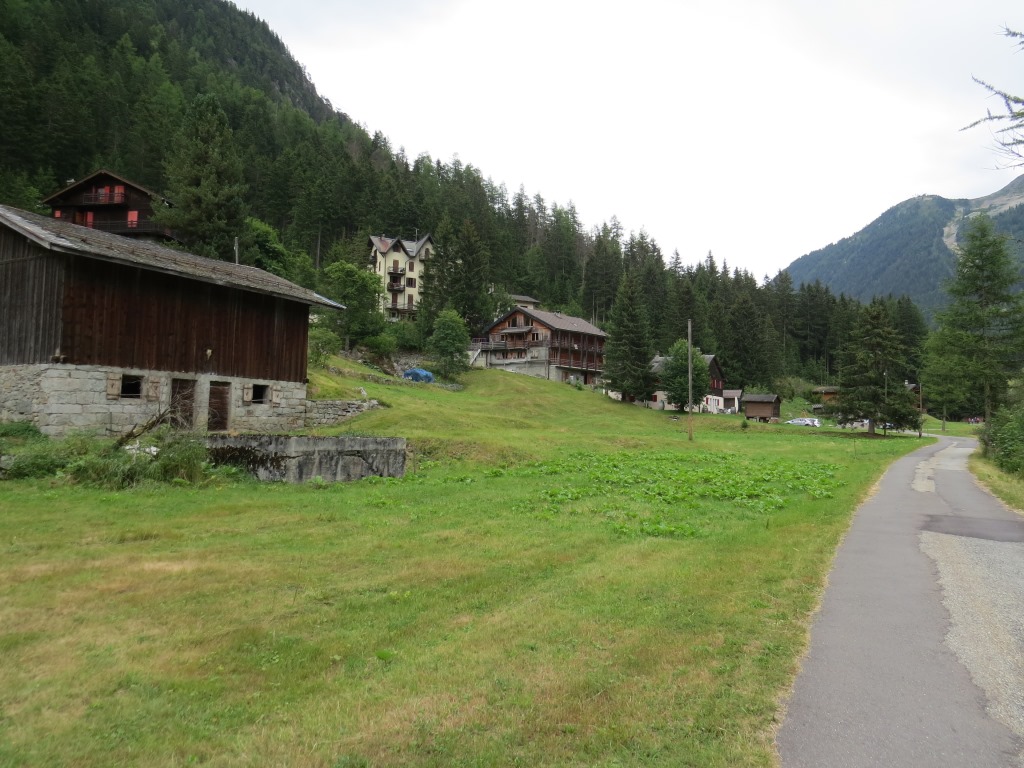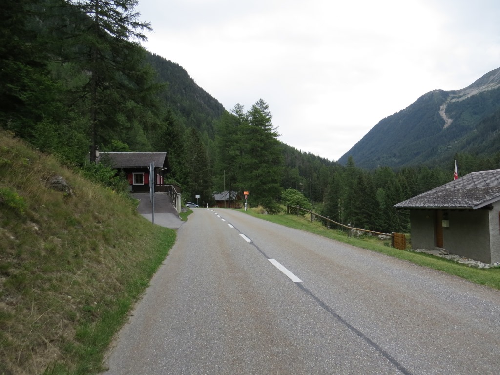 nach dem überqueren der Hauptstrasse, geht über ein Strässchen nach Champex d'en Bas 1375 m.ü.M. + Champex d'en Haut 1483 m.