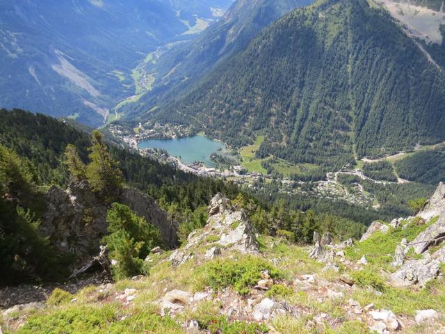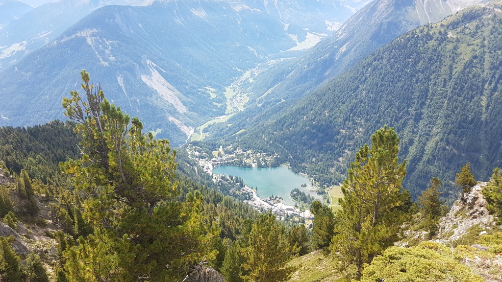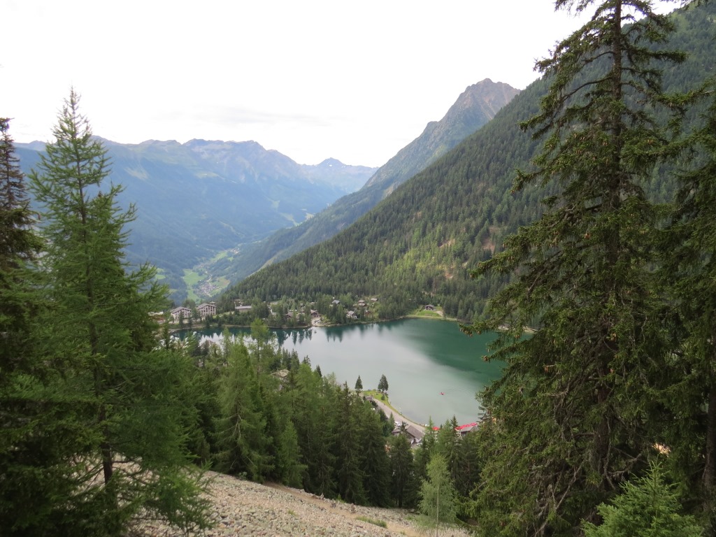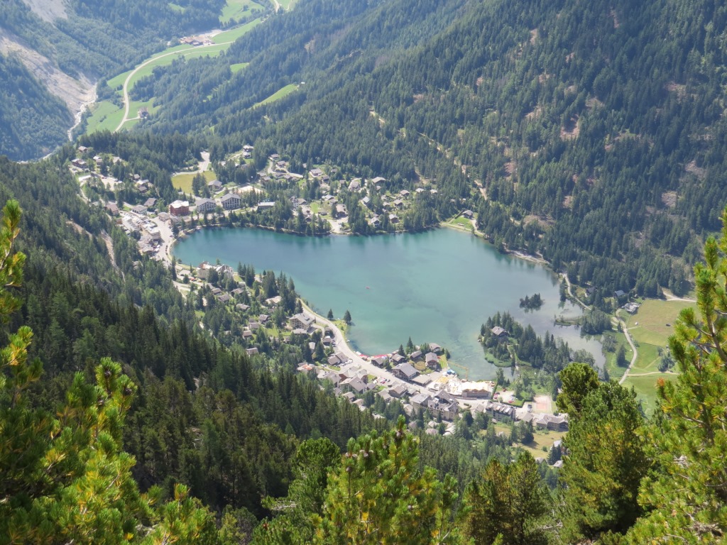 Tiefblick nach Champex Lac und das Val Ferret