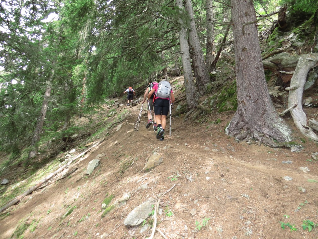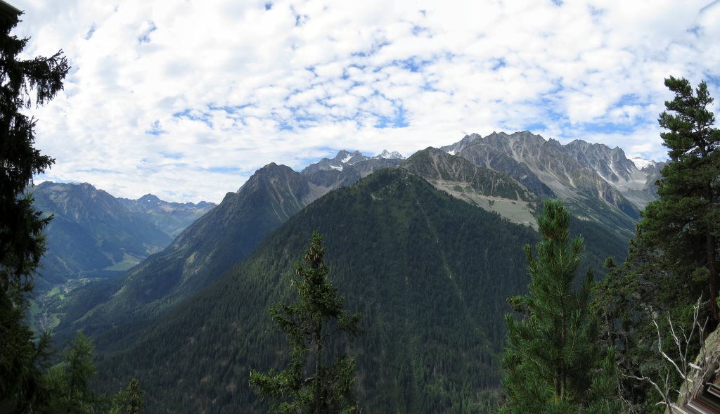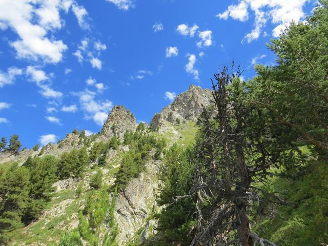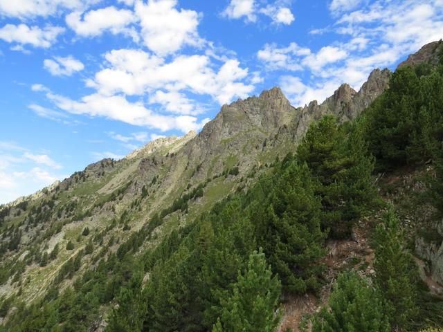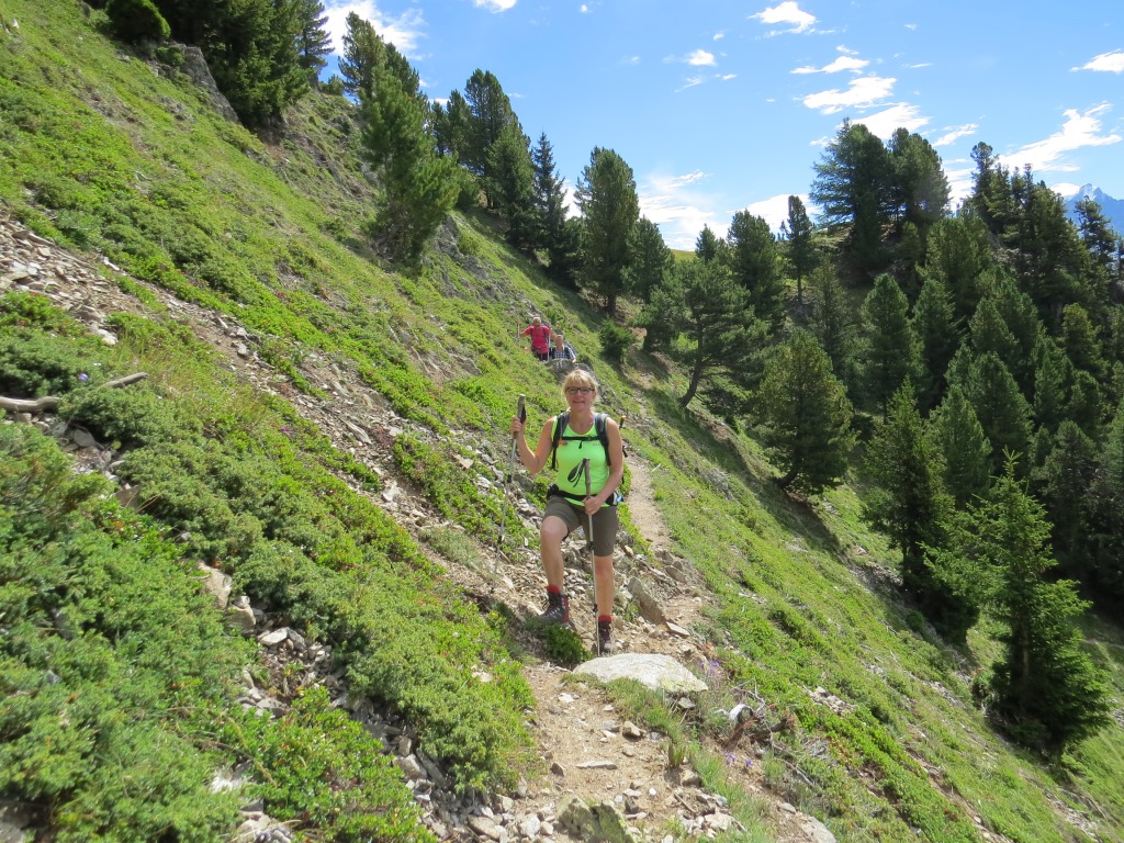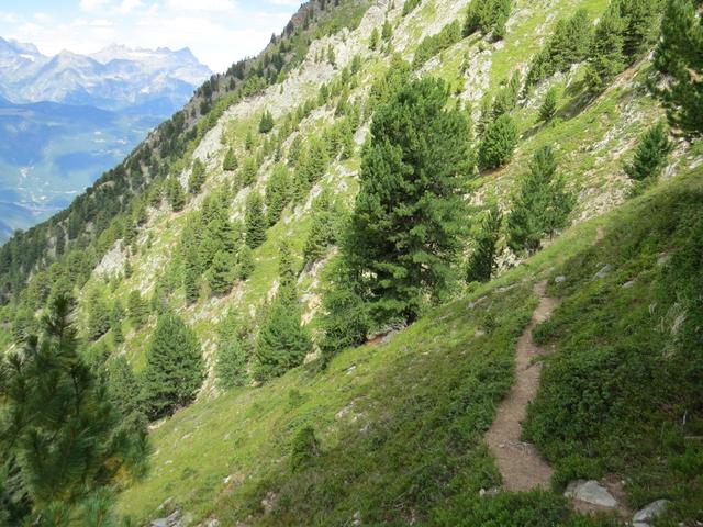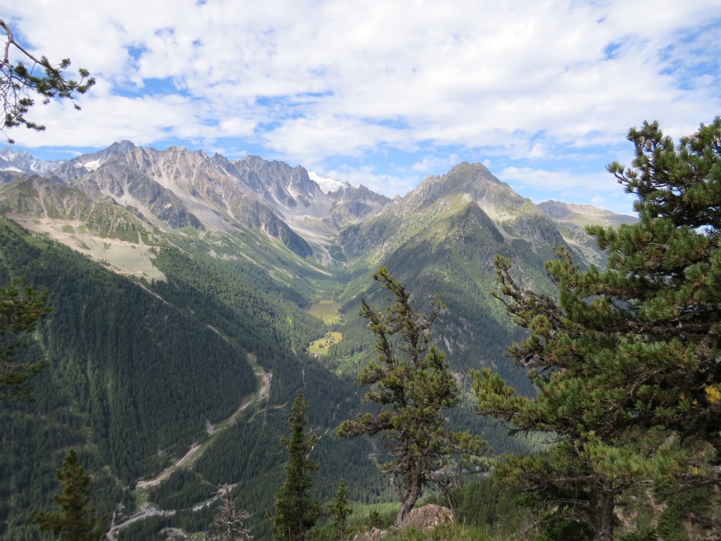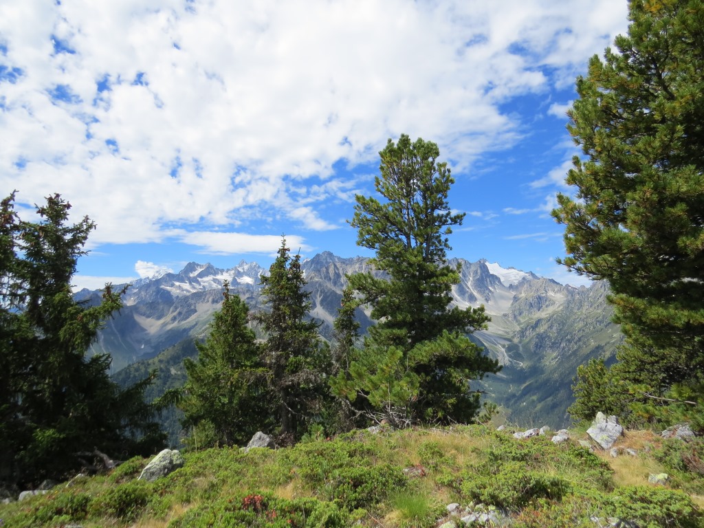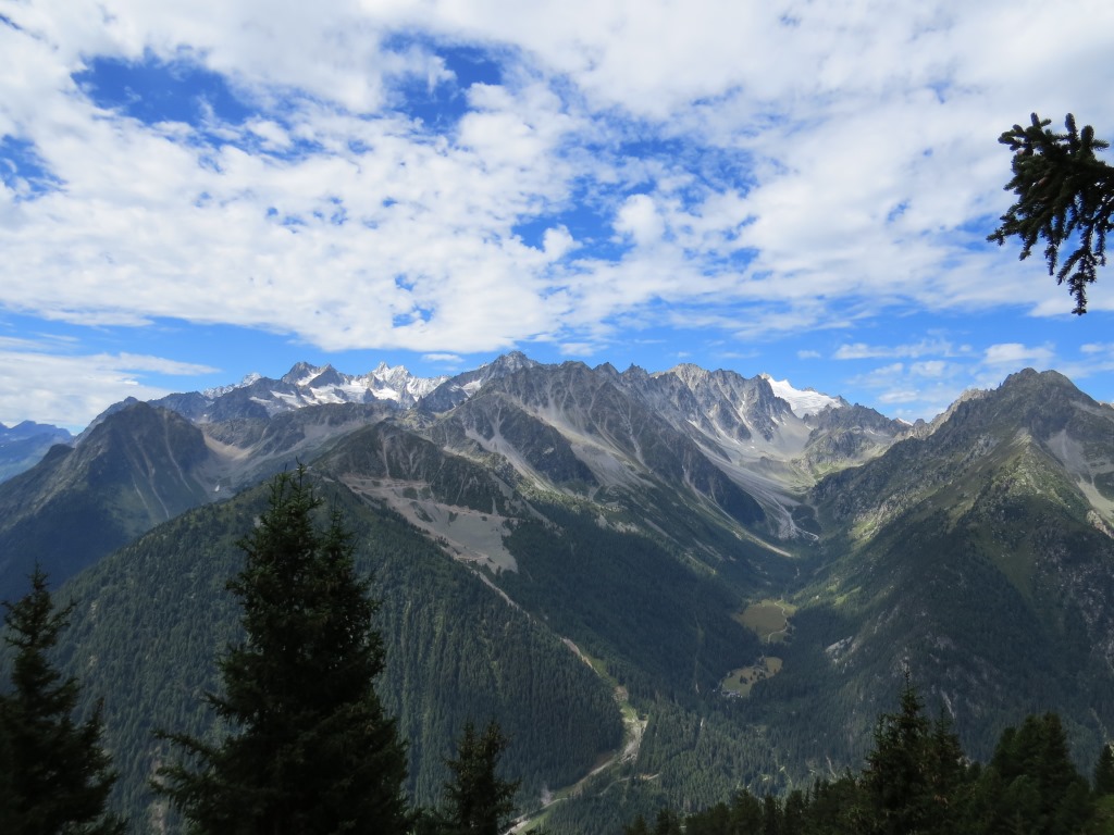 der Bergwald gibt immer wieder einige schöne Ausblicke frei. Hier mit Blick auf La Breya und die Combe d'Orny