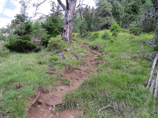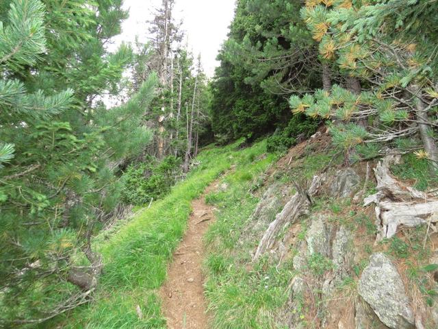 der Weg führt auf fast gleichbleibender Höhe nun über schmale Bergwege