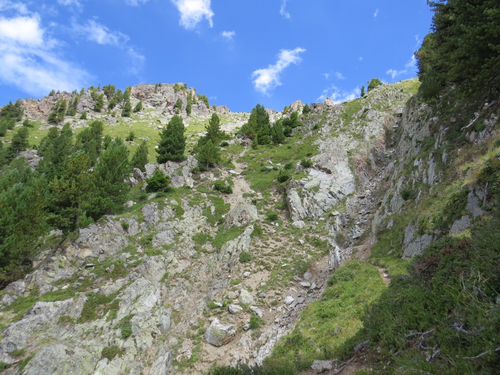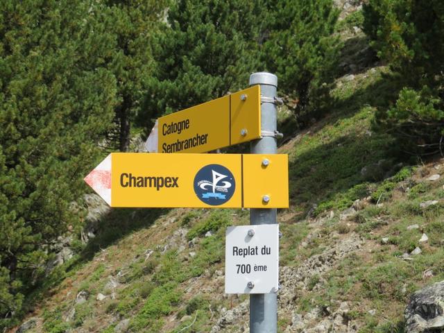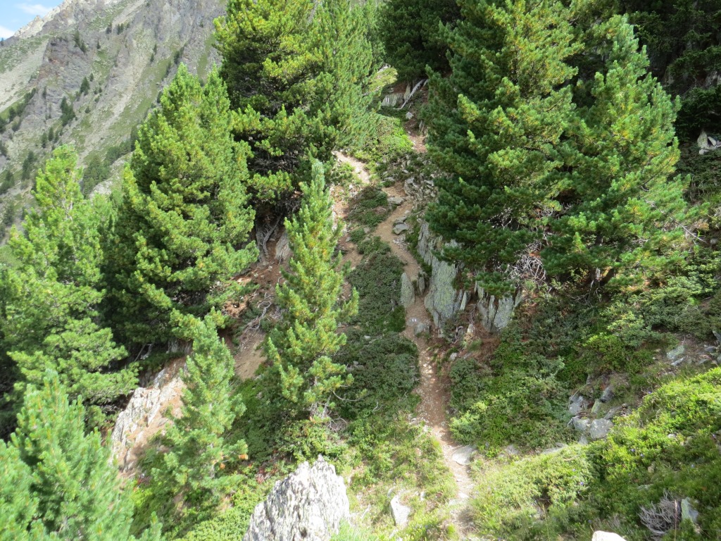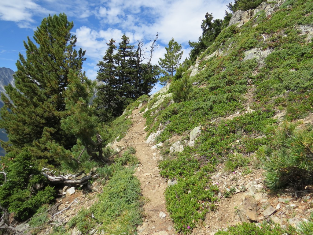 bei Punkt 2402 m.ü.M. macht der Bergpfad einen starken linksknick, Richtung Champex d'en Bas