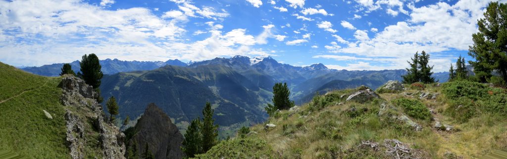 schönes Breitbildfoto mit Blick zum Grand Combin, Mont Vélan und Trientgebiet