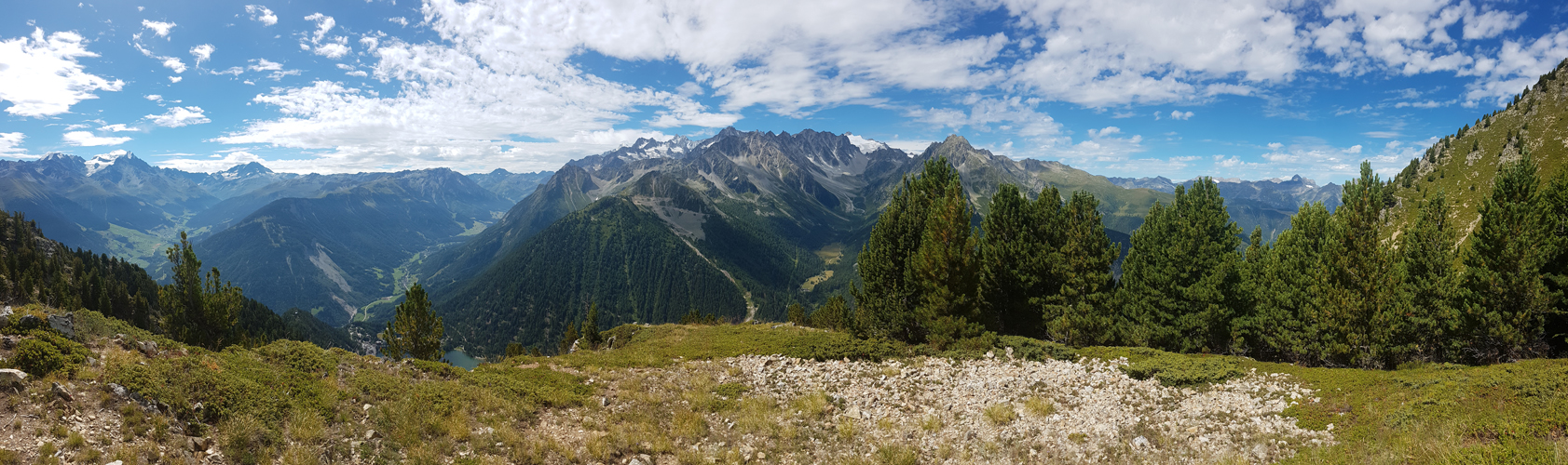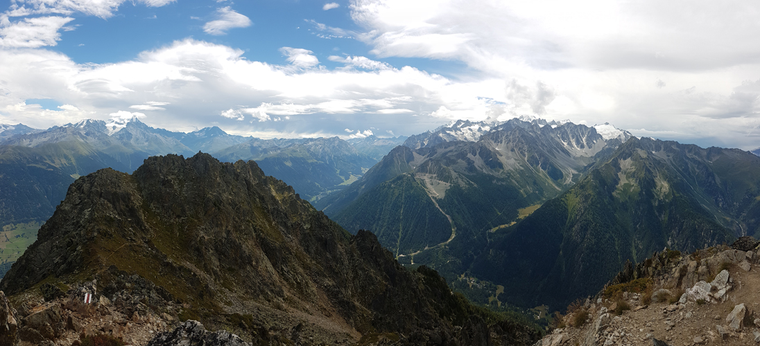 super schönes Breitbildfoto aufgenommen auf dem Replat de Fratsay. In der Bildmitte das Trientgebiet