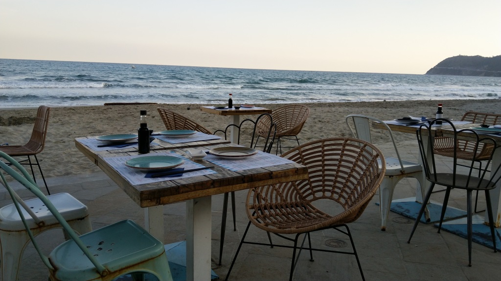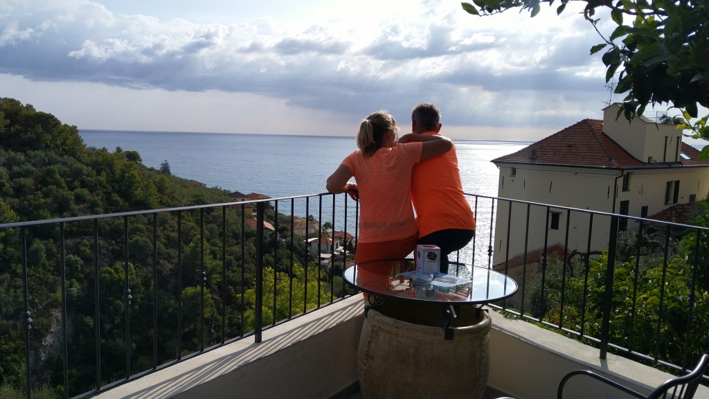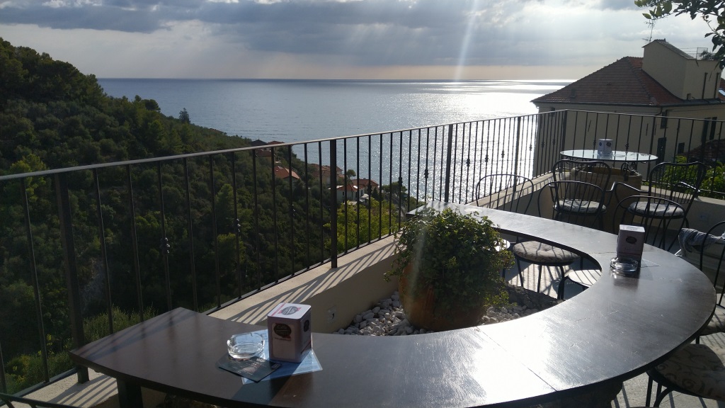 während dem Essen, geniessen wir den schönen Blick hinunter nach Laigueglia Datum 02.01.2023