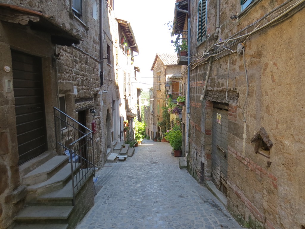 wir erreichen das historische Zentrum von Sutri, das malerisch auf einem Tuffsteinhügel liegt