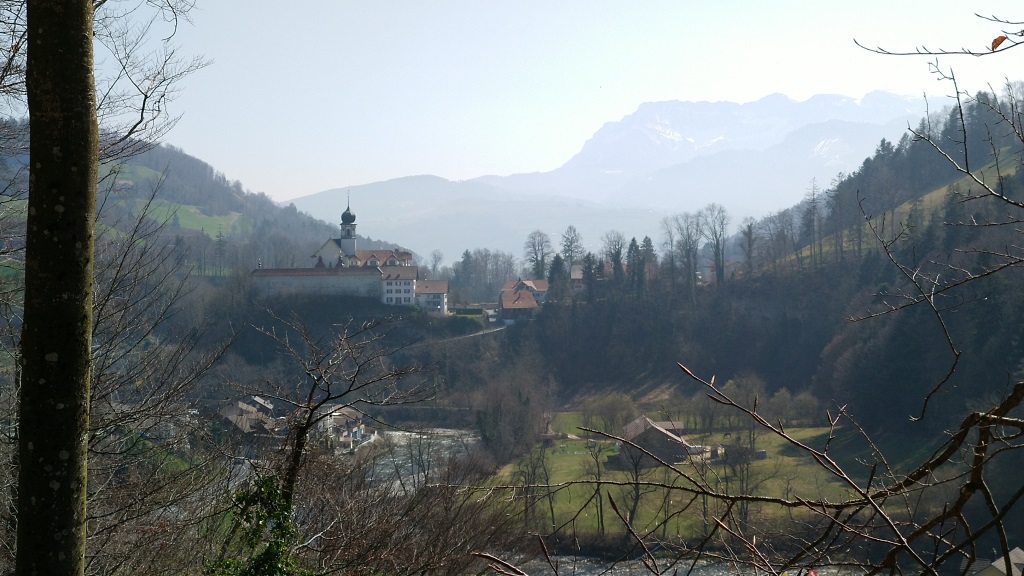 während dem wandern Richtung Wolhusen blicken wir zurück zum Wallfahrtsort Werthenstein