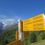 Wegweiser beim Hotel Schwarzhorn. Unser erstes Zwischenziel lautet Meidpass Datum 07.03.2019