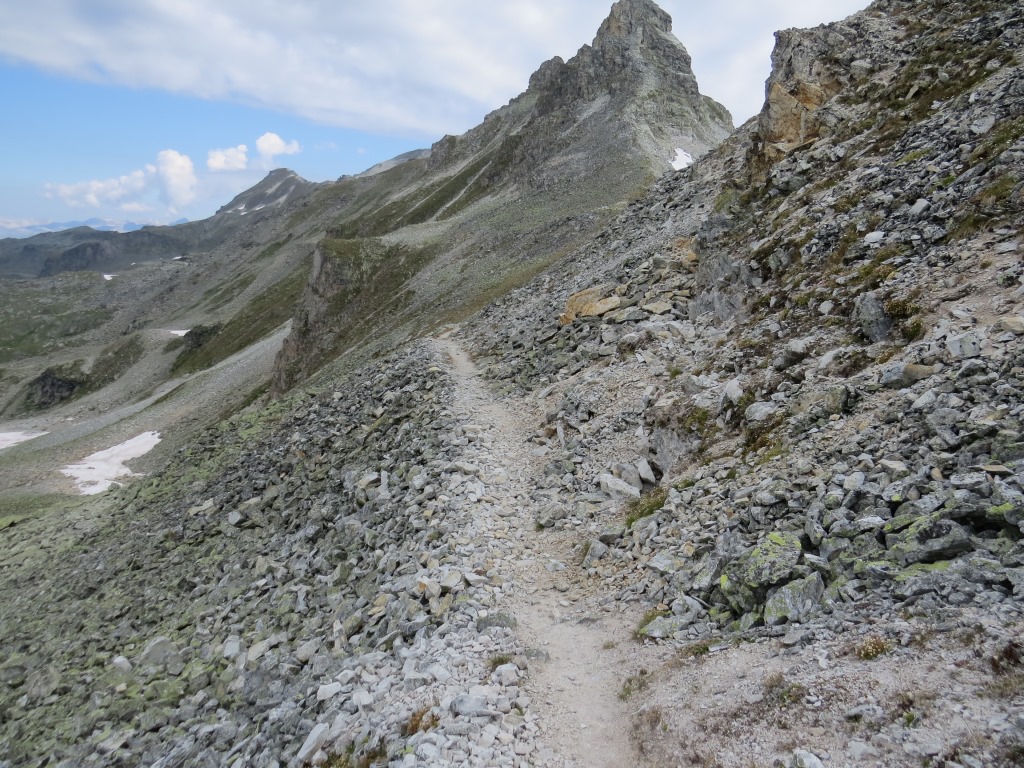 gut ersichtlich der Bergpfad der auf den Meidpass hinauf führt Datum 07.03.2019