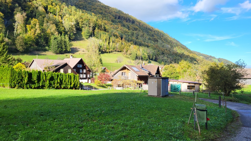 bei einem Bauernhof in Stieg bekommen wir Klappstühle und ein Tisch. So können wir das mitgebrachte Fondue vorbereiten Datum 21.12.2023
