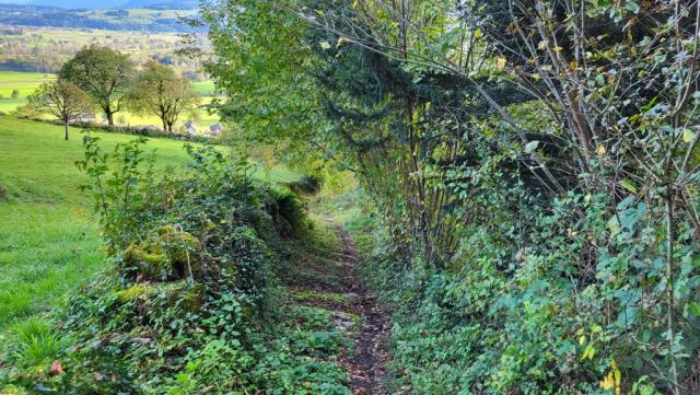 bei Rüthi steigt der Wanderweg nun merklich aufwärts Datum 21.12.2023