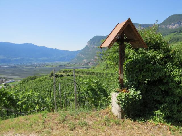 der Weg senkt sich nun in die Talebene hinunter und gleichzeitig nach Magreid-Magrè an der Weinstrasse Datum 07.06.2023