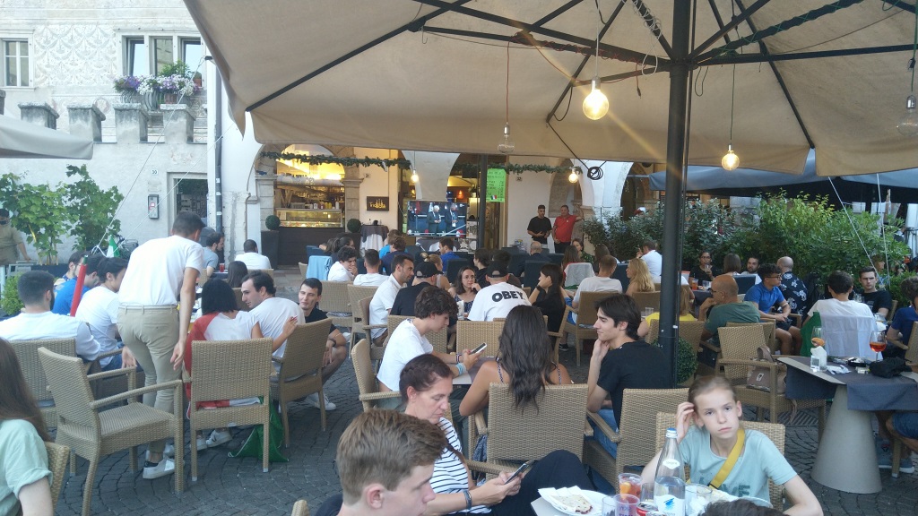 bei einer Bar mit Grossbildschirm, haben wir wieder Glück und finden wieder einen freien Tisch Datum 07.06.2023