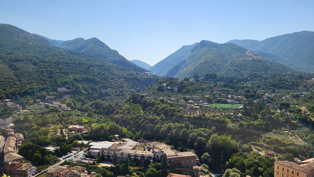 vor uns öffnet sich das Aniene-Tal mit seinem Fluss – in zwei Tagen wird unser Weg dort hindurchführen