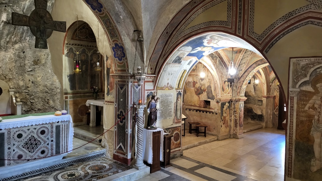 wir befinden uns nun in der Höhle wo der heilige Benedikt drei Jahre gelebt hat