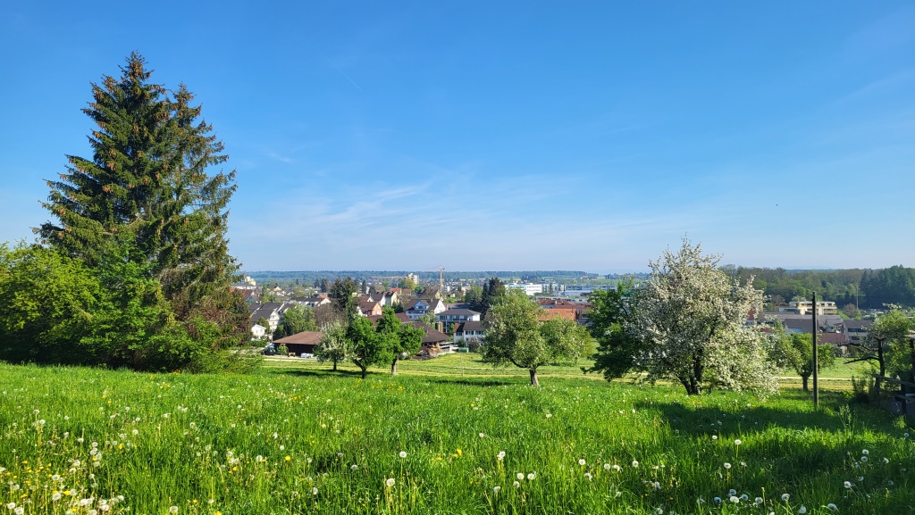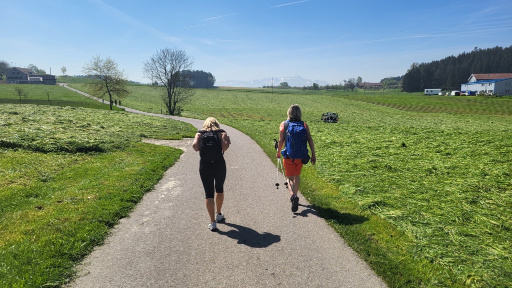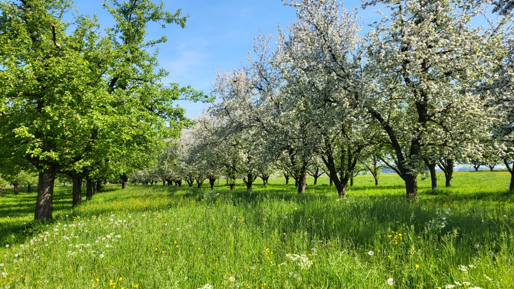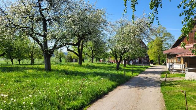 die heutige Etappe wird uns fast ausschliesslich über grüne Felder, Obstplantagen und Weiler führen