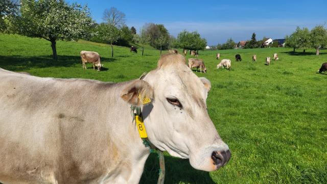eine neugierige Kuh begutachtet uns
