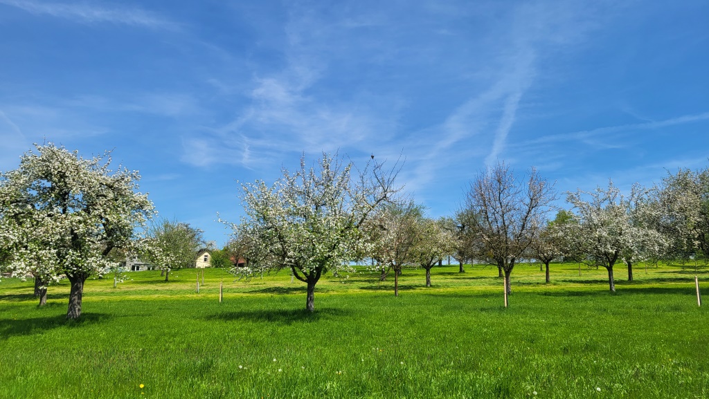 immer sehr schön anzuschauen wenn die Obstbäume Äpfel, Birne, Zwetschge in voller Blüte stehen