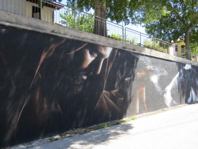 an einer riesigen Graffiti wird das Wunder dargestellt. Mit dem Wasser aus dem Oratorium von San Michele...