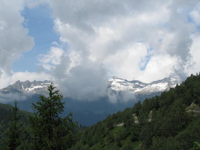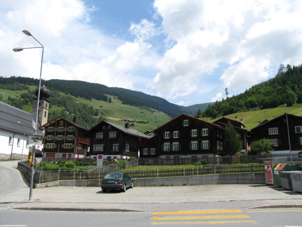 in Ilanz hat es noch geregnet! Bestes Wanderwetter. Blick Richtung Piz Cavardiras