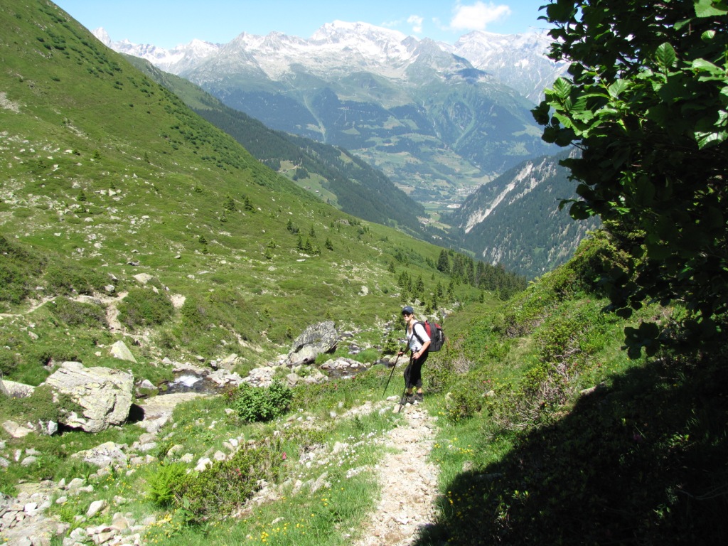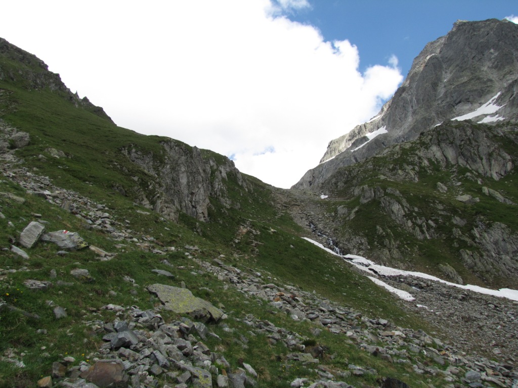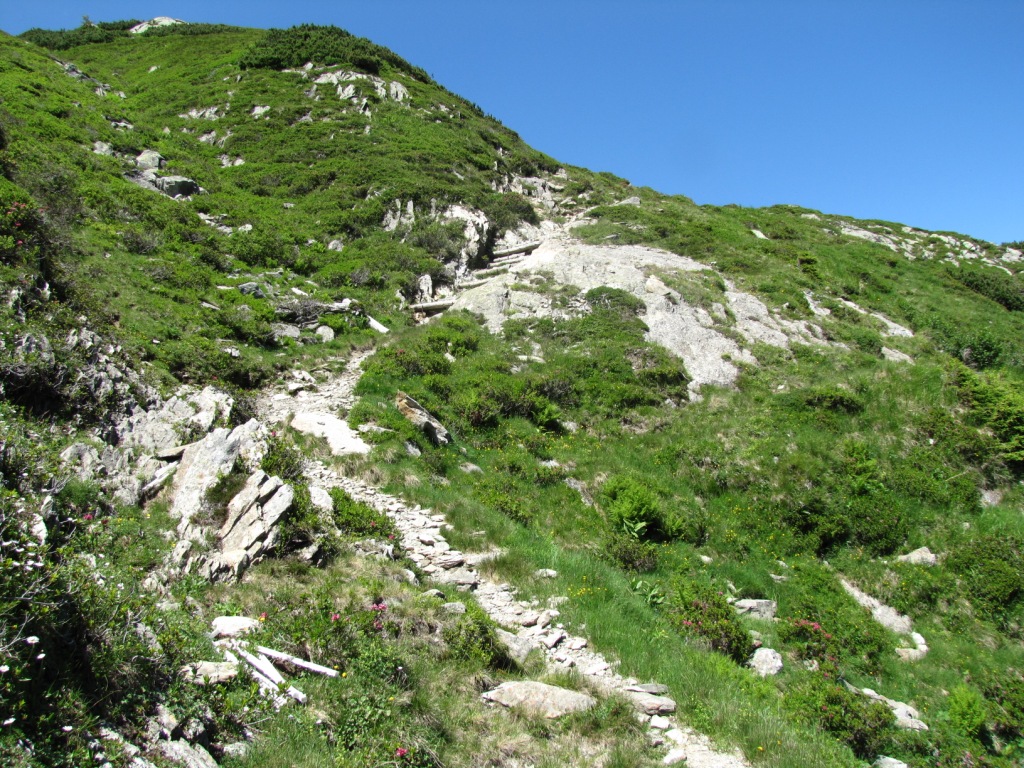 Blick zurück. Rechts gut sîchtbar der gut angelegte Bergpfad