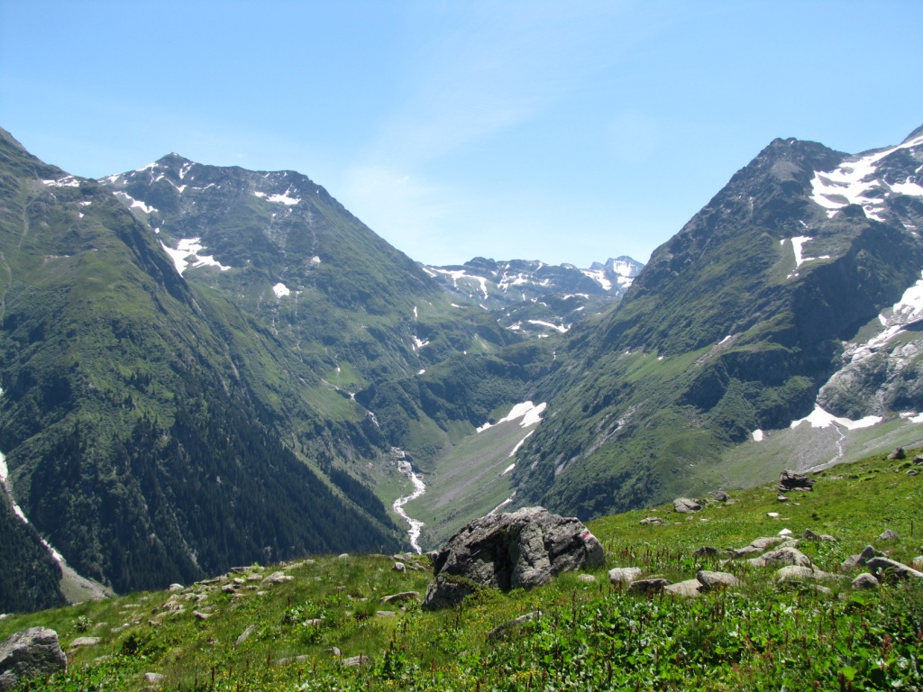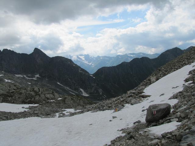Blick zurück Val Plattas. Im Hintergrund die Kette mit dem Piz Cavardiras. Dort waren wir auch schon