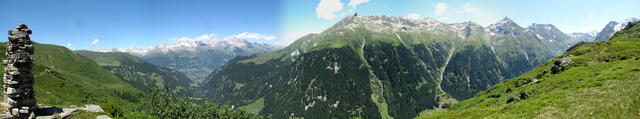 Breitbildfoto vom Steinmann Punkt 2028 m.ü.M. aus gesehen, Richtung Surselva