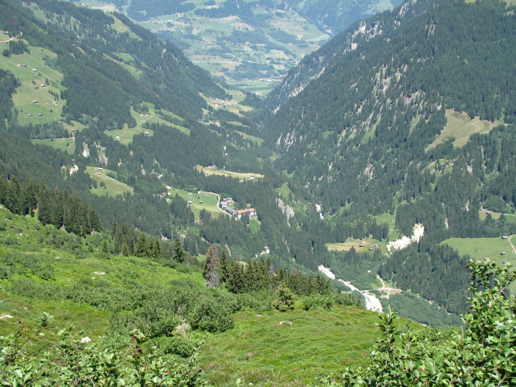 tief unter uns das Val Sumvitg. Rechts sieht man den Übergang in die Greina Ebene und zur Terri Hütte