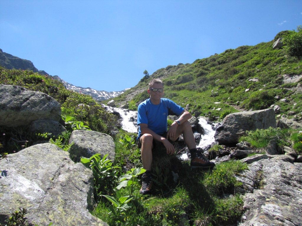Franco geniesst die Kühle in der Nähe des Baches. Je tiefer wir runtergehen, je wärmer wird es