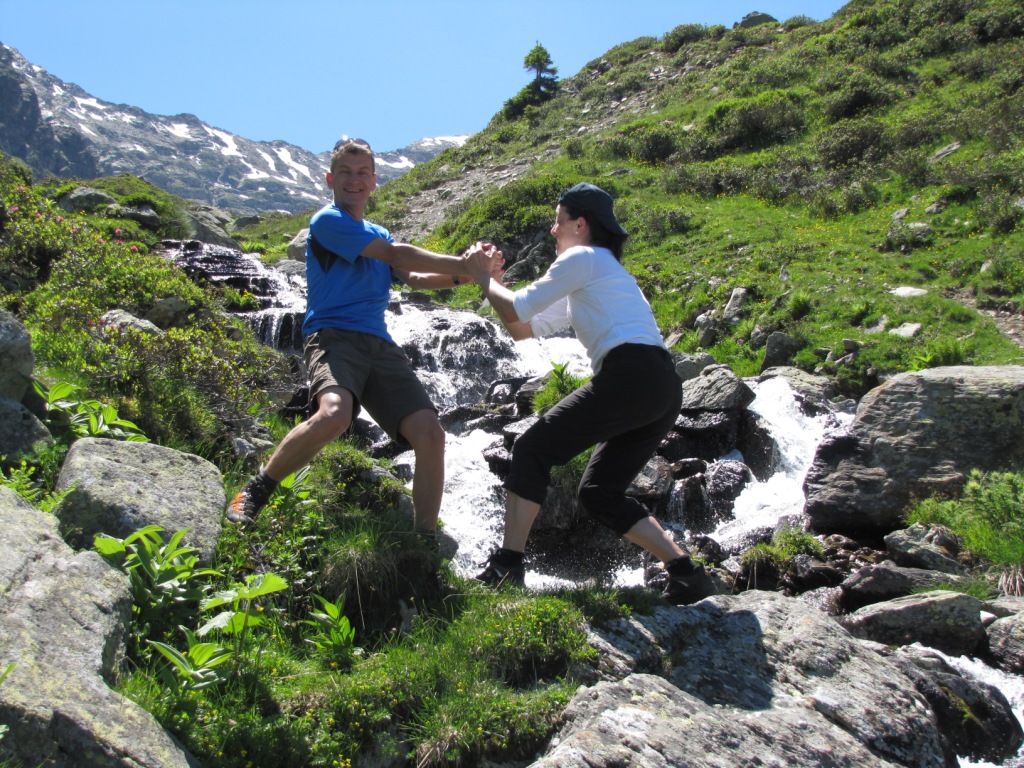 danach möchte Franziska, Franco auch gerne in den Bach stossen
