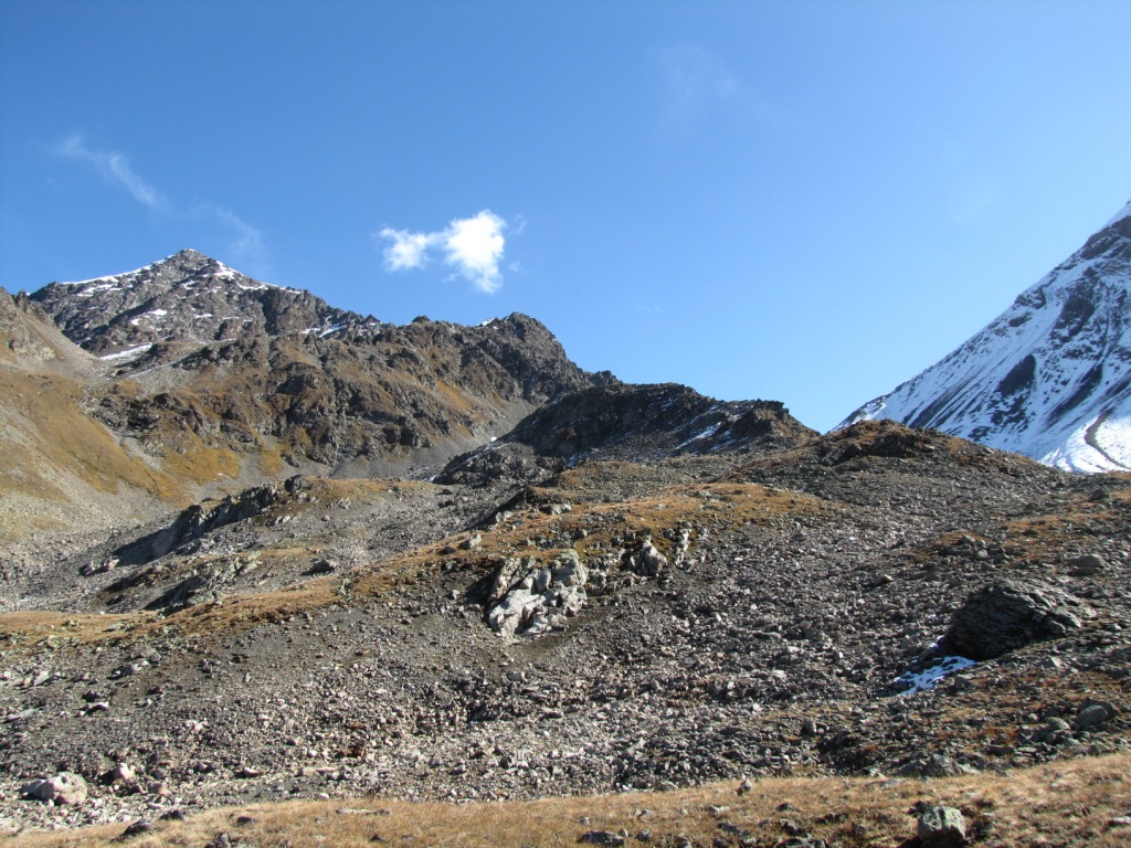 Blick zurück zur Fuorcla Pischa. Links davon der Piz Blaisun
