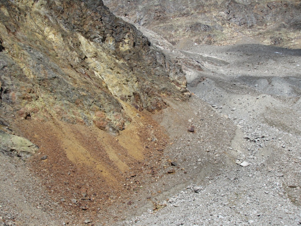 am Fusse des Piz Pischa. Interessant die verschieden farbigen Gesteine