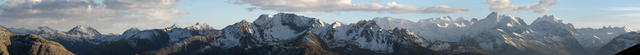 ein Breitbildfoto das einem die Sprache verschägt! Die gesamte Berninagruppe schön aufgereiht. In der Mitte der Biancograt