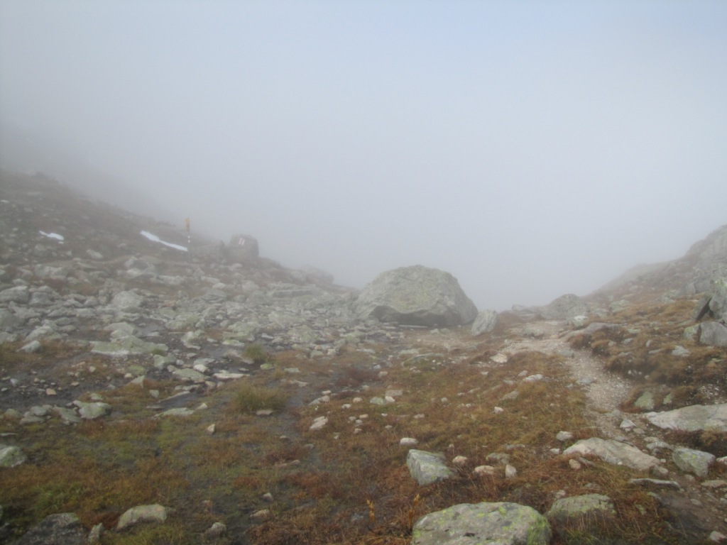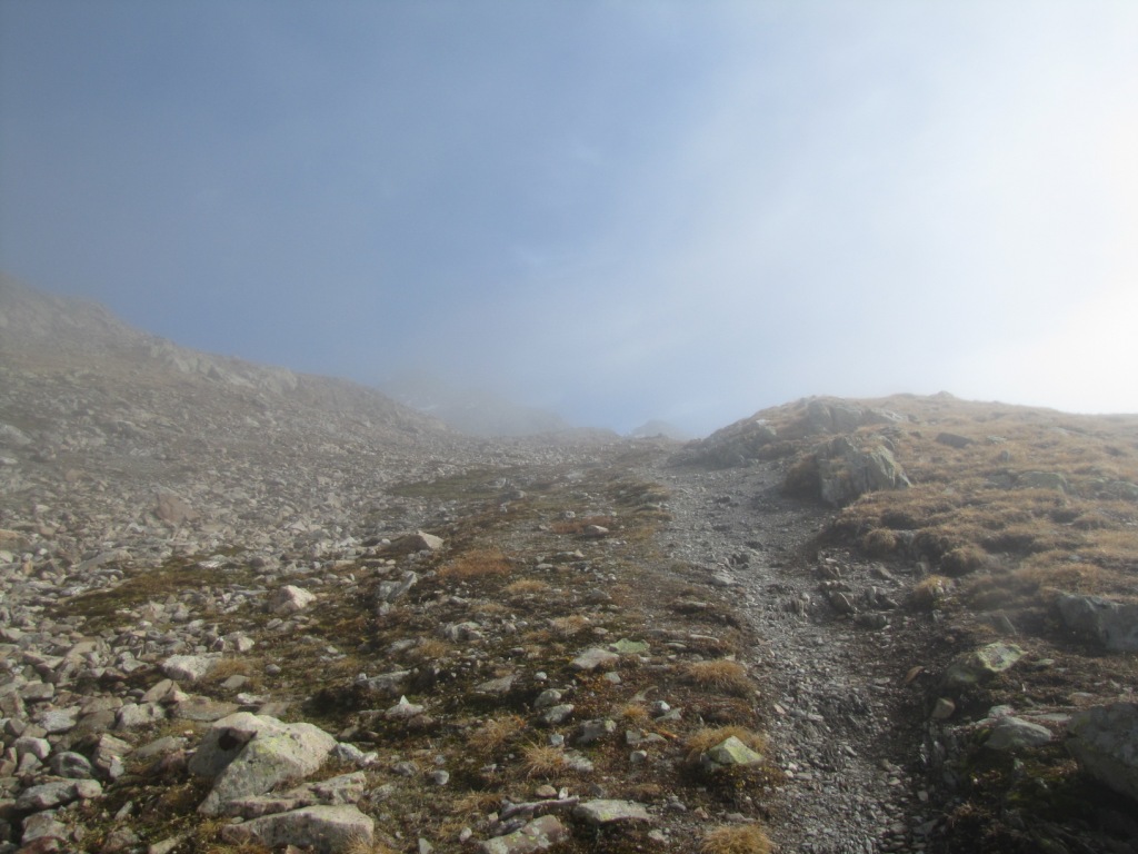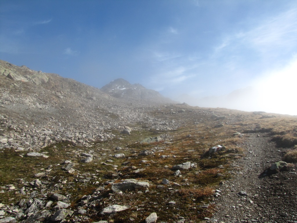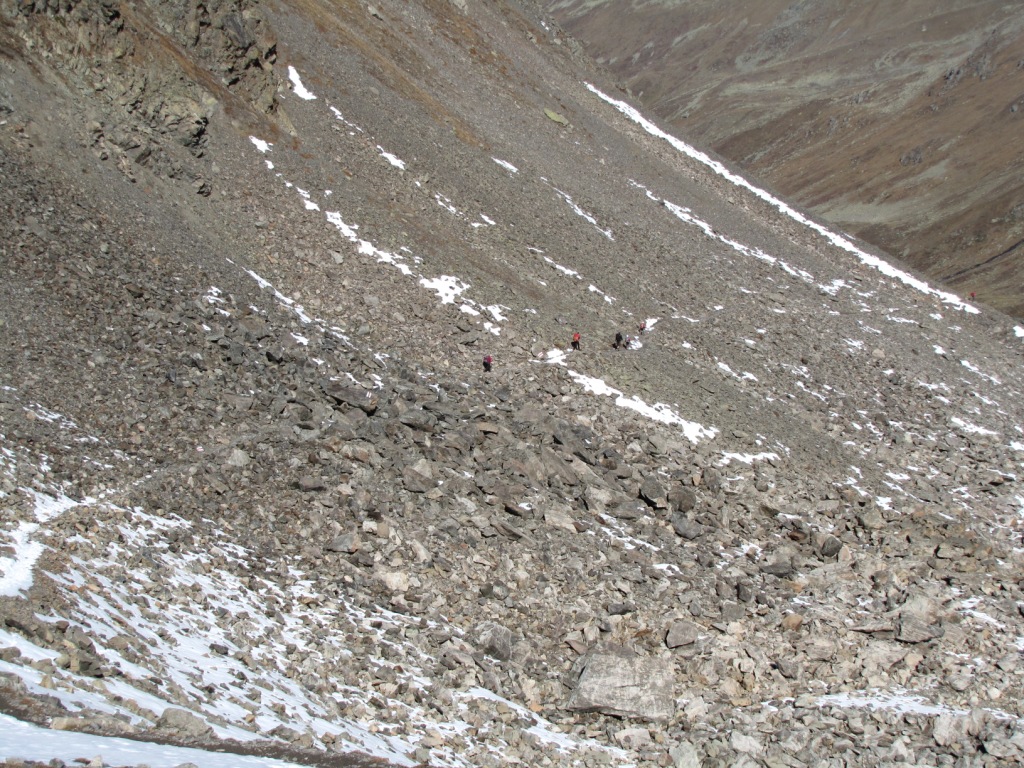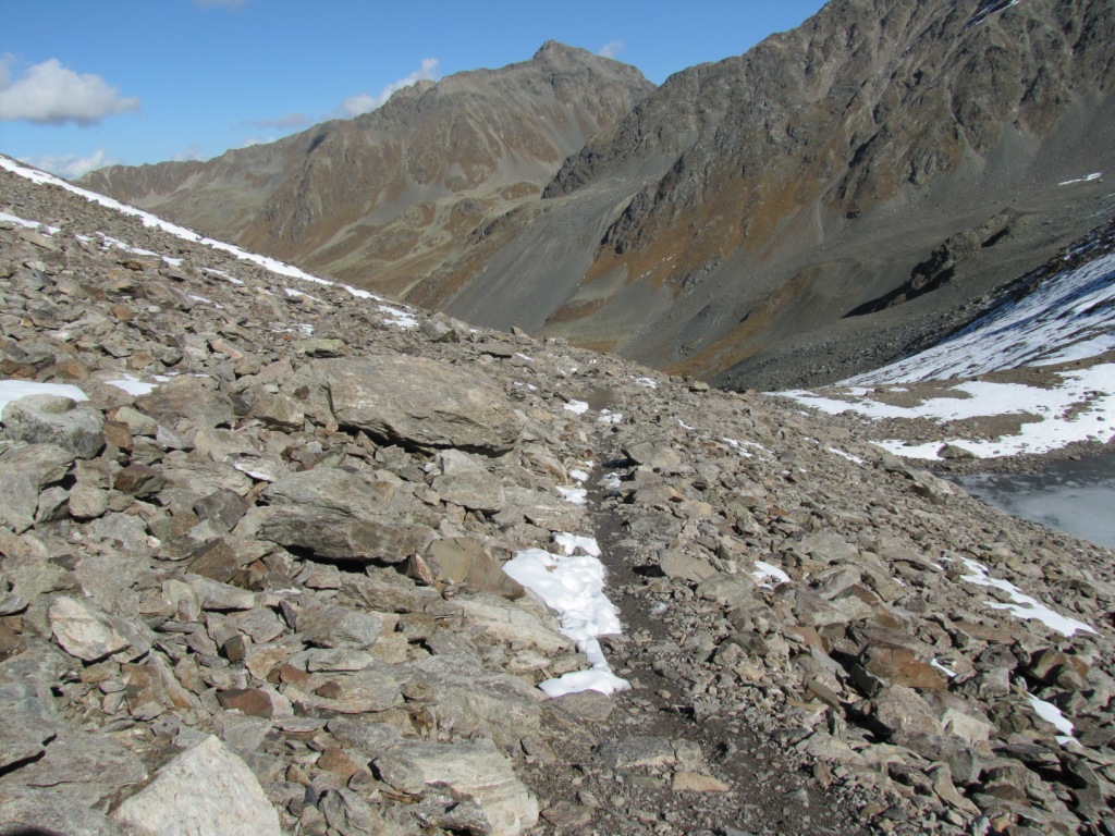der Weg führt vom Sertigpass alles über Schutt und Geröll abwärts Richtung Grüensee Datum 01.12.2010