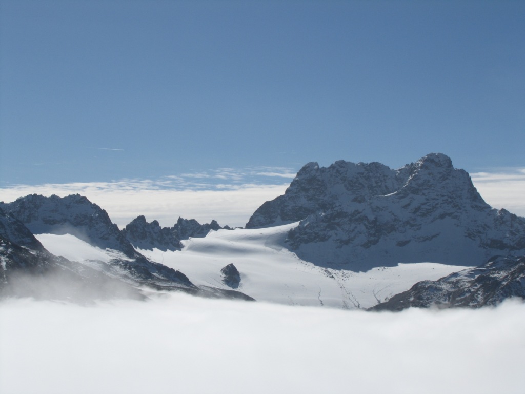 der Piz Murtelet taucht aus dem Nebel hervor Datum 01.12.2010