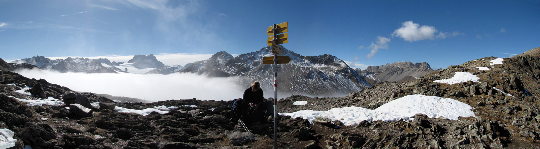 Wegweiser bei Punkt 2397 m.ü.M. Es geht Richtung Sertigpass Datum 30.11.2010