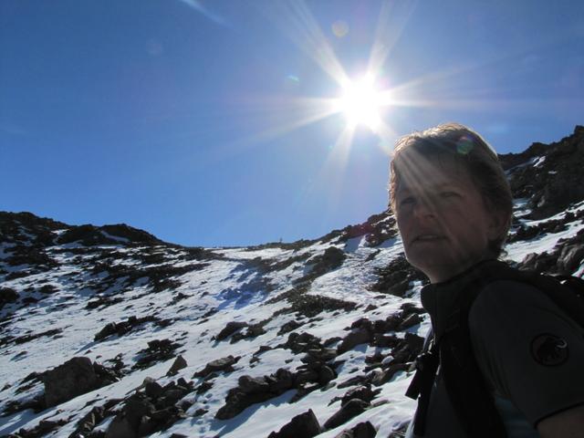 Mäusi hat die Jacke abgezogen. Auf dieser Seite des Pass scheint die Sonne und die Temperatur ist mild Datum 01.12.2010