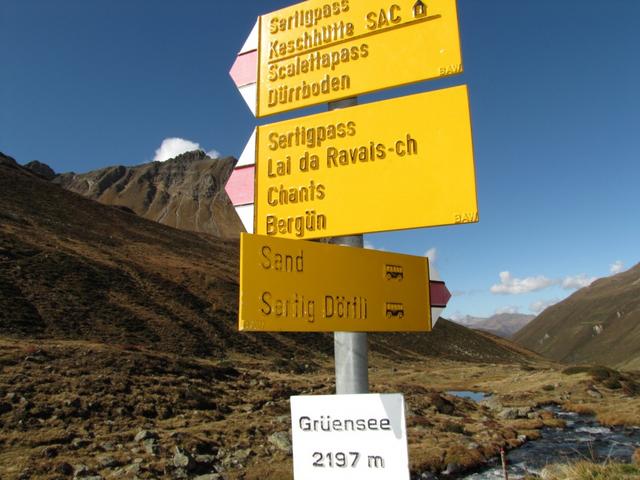 Wegweiser beim Grüensee 2204 m.ü.M. Datum 01.12.2010