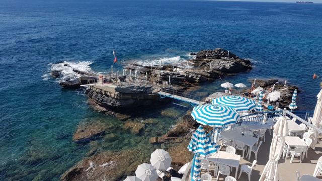 ...und erkennt, das wir Bogliasco erreicht haben. Hier endet die Strandpromenade "Anita Garibaldi"