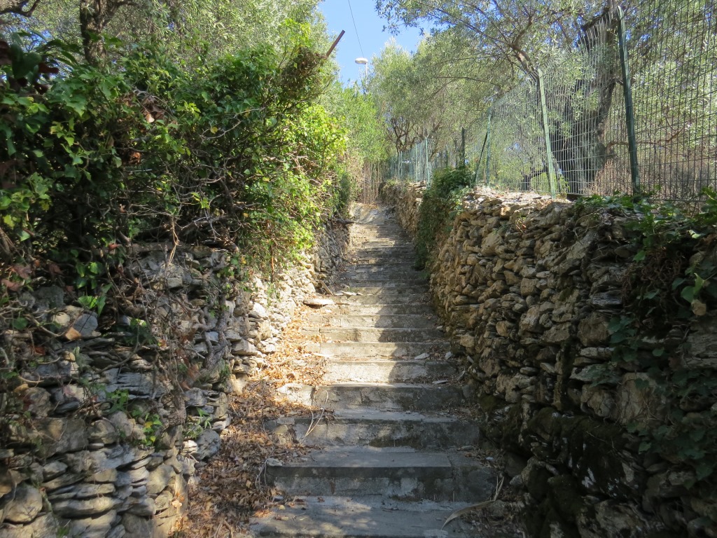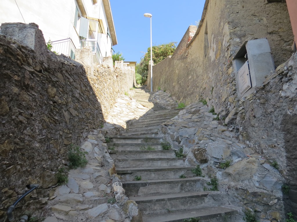 vom Strand aus, führt uns die Via della Costa über Treppen sehr steil wieder aufwärts